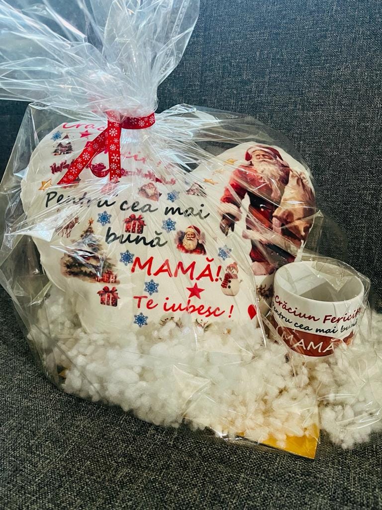 Surprinde persoanele dragi cu un set cadou de Crăciun unic și memorabil! Acest set este compus dintr-o cană personalizată și o pernă personalizată, perfecte pentru a aduce zâmbete și căldură în sezonul sărbătorilor. Este alegerea ideală mai ales atunci când ești în pană de idei, dar vrei totuși să oferi ceva special și cu suflet.